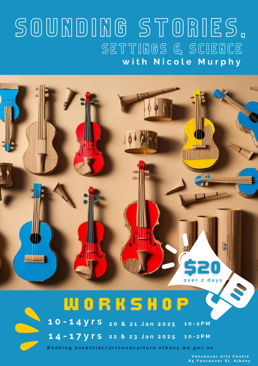 Participants will explore a fun and step-by-step creative process where they use local stories, history, recycled materials or nature as inspiration to create something new. These workshops are all about sparking imagination and helping participants see their world in exciting new ways!