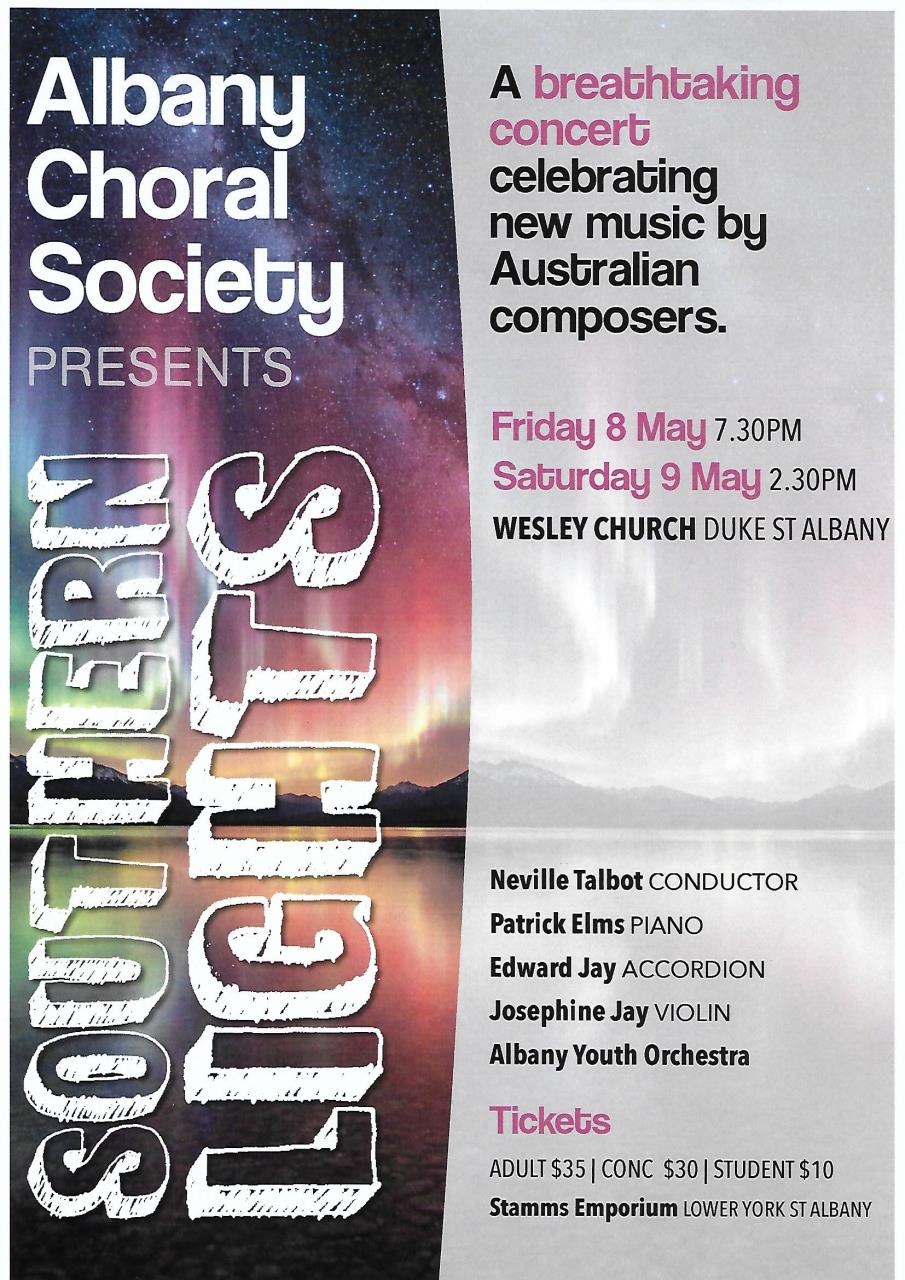 Tickets available from Stamms Emporium, York Street Albany.