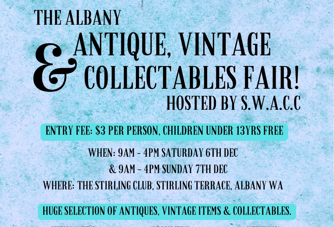 The Great Southern's biggest antique and collectables fair is on again, hosted by the Southern WA Collectors Club, and consisting of high-quality antiques, vintage items and collectables.